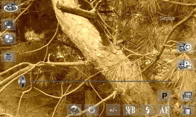 Tombol atas di tepi kiri layar digunakan untuk beralih kamera pada perangkat Anda. Tombol kedua dan ketiga di bawah digunakan untuk memilih efek dan adegan, yang dapat Anda gunakan ketika Anda mengambil gambar. Bila Anda memilih efek ini atau adegan, nama-nama efek dan adegan yang dipilih akan ditampilkan di sudut kanan atas perangkat. Bagian bawah tombol di tepi kiri layar digunakan untuk memasukkan album Kamera Anda dan melihat gambar yang diambil. Pada beberapa perangkat, tombol ini bekerja dengan lag. Jika Anda akan sulit untuk menggunakan tombol ini, Anda dapat menyembunyikannya.