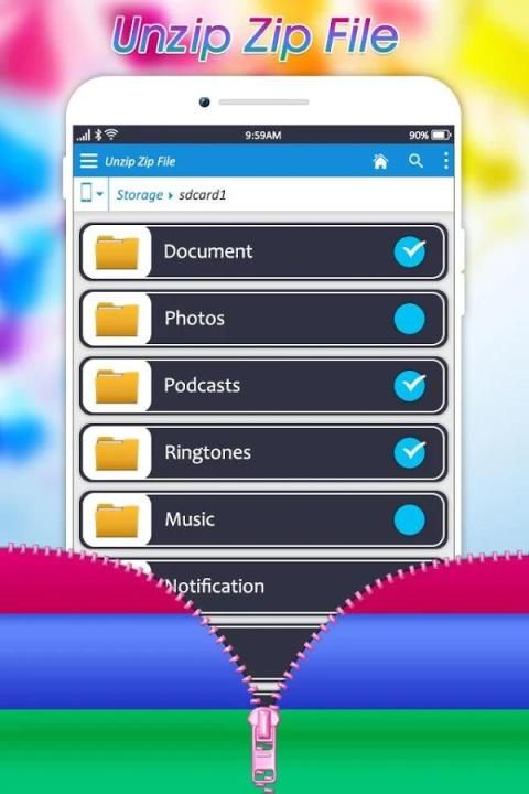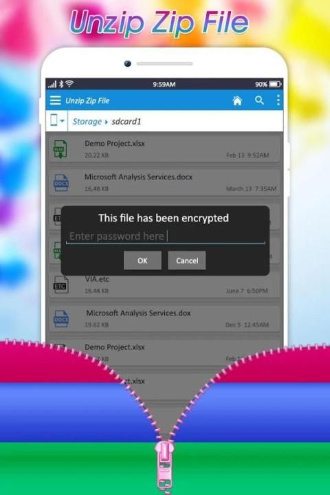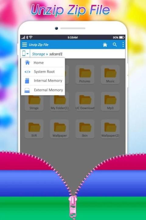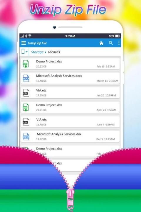 Mudah terbuka dan ekstrak file zip dan arsip dan menyimpannya di dalam telepon. Zip UnZip Files sebuah file zip extractor gratis file dekompresi adalah alat manajemen file ZIP pada perangkat Android dengan (Extractor Tool, Unzip Tool, zip Tool) - file jenis (ZIP).