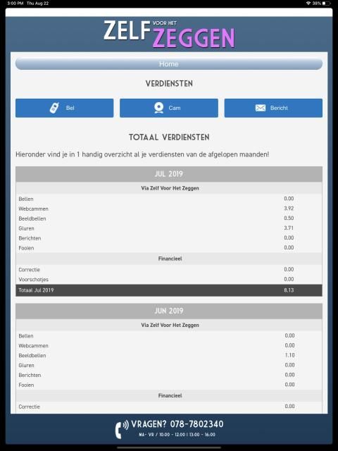Dit is de dames app van ZelfVoorHetZeggen.nl. Met deze app kun je eenvoudig jezelf aan- en uitzetten op ons platform, of snel even je verdiensten checken!