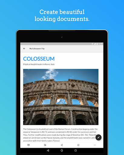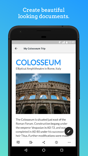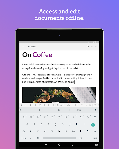 Aplikasi pengolah kata yang sederhana dan apik untuk menuliskan hati Anda, membawa teman -teman Anda dan membicarakannya menggunakan komentar.Sinkronkan dokumen di seluruh perangkat dan mengaksesnya ke mana pun Anda pergi.