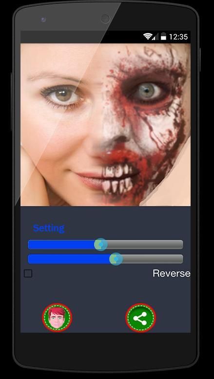Zombie Wajah Changer memberikan selamat dan zombie foto efek khusus nyata wajah yang booth pic bisa berubah.