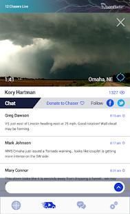 The Zoom Radar Storm Chaser App is a weather radar app combined with dozens of available live Storm Chasing Streams! Recommended for Android versions 6 and up. Do you love watching mother nature in action or just like to stay informed when severe weather is near? This app will allow you to chase tornadoes from the comfort of your couch. On big severe weather outbreak days there will often be 20 or as many as 50 simultaneous live streams for you to watch! Our live chat allows you to chat with other users and even interact with some chasers! Severe warnings in the US are also included in the app. We are allowing phones to download this app with Android versions 4 and 5 because we want everyone to participate. But on versions lower than 6 you should expect degraded quality and some crashes. For the higher quality phones with more RAM/ better performance we supply the best super resolution level 2 radar data available! The app is in partnership with SevereStudios SevereStreaming Storm Chasers. Together we are the largest storm chasing team around with 100s of members. The main chase areas are in the central and southern US but we do have a few chasers all over the world from Canada to South America and Europe.