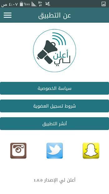 تطبيق " أعلن لي " مختص بالاعلانات المجانية ، أنشر اعلانك بكل سهوله ومجاناً بدون اي عمولة أو رسوم