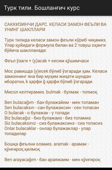 Turk tilini oson ўrganish ilovasi.