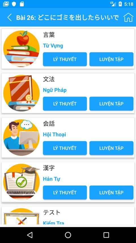 (từ vựng, ngữ pháp, kanji, luyện nghe, luyệ đọc, kaiwa, mondai, video, ...)