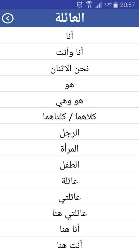 Aplikasi dalam bahasa Arab dan menawarkan terjemahan bahasa Arab dari kata-kata yang paling sering digunakan
