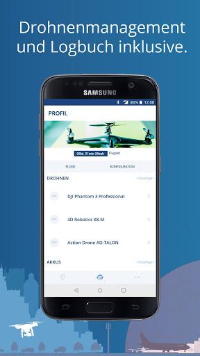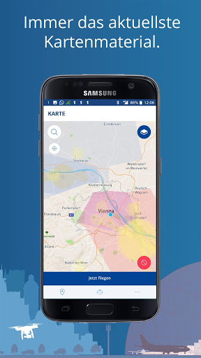 • Nach Angabe von Flughöhe und -radius wird angezeigt, ob man sich beispielsweise in einer Kontrollzone eines Flughafens oder in einem Flugbeschränkungsgebiet befindet.