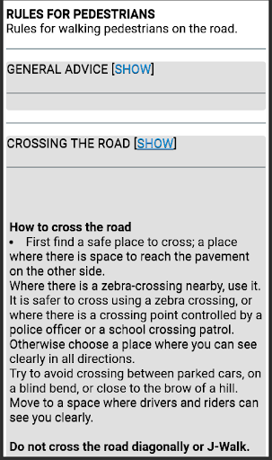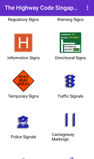 Aplikasi ini berisi aturan jalan, peraturan, dan sinyal lalu lintas yang digunakan di Singapura.