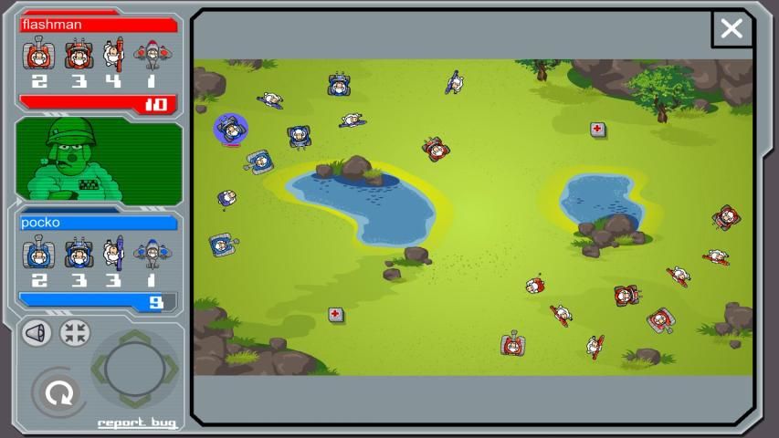 - Easy gameplay. When your turn comes just use the in-game joystick to move your unit close to the enemy and hit the fire button, before the counter hits 0. You can also pick-up health packs to recover a damaged unit.