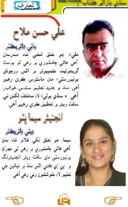 Aplikasi ini didasarkan pada Sindhi Textbook kelas 1 yang diterbitkan oleh Departemen Pendidikan, Pemerintah. Sindh, Pakistan, yang di-host di Aplikasi ini untuk tujuan pengajaran.