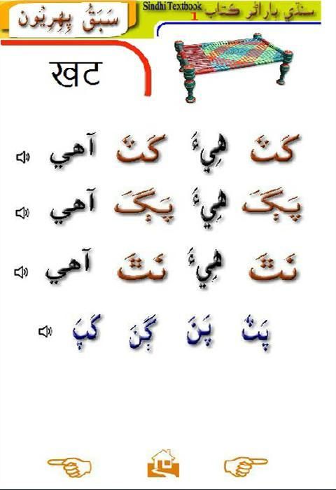 Aplikasi ini didasarkan pada Sindhi Textbook kelas 1 yang diterbitkan oleh Departemen Pendidikan, Pemerintah. Sindh, Pakistan, yang di-host di Aplikasi ini untuk tujuan pengajaran.