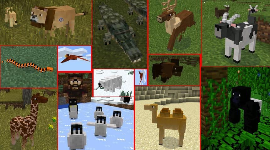 Pocket Makhluk menambahkan 53 hewan baru untuk Minecraft Pocket Edition. Semuanya dari mammoth rideable, burung unta dan gajah untuk makhluk laut ganas seperti hiu putih. Semua hewan punya tekstur yang menakjubkan dan terlihat memukau mirip dengan bagaimana mereka terlihat dalam kehidupan nyata. Tapi tentu saja, dengan sentuhan desain kuning Minecraft ini.