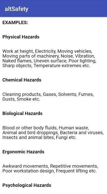 • Mechanical, Electrical or any other supervisors can also use this app to understand potential hazards and safety precautions for different work activities