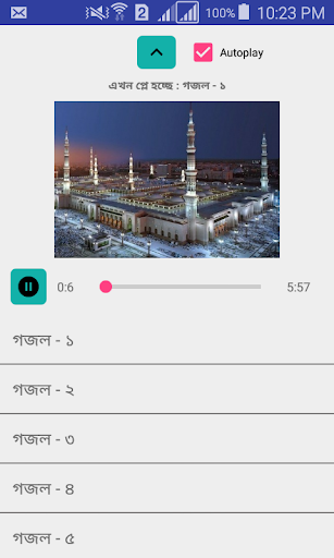 Audio 30 Islamic Ghazal dipilih. Fitur: 1.Autoplay 2.Mainkan - Jeda