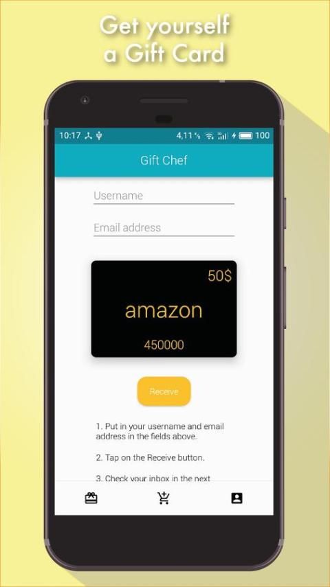 Hadiah Chef - Kartu Gratis untuk Amazon tidak memerlukan pendaftaran, sehingga Anda dapat mulai langsung.