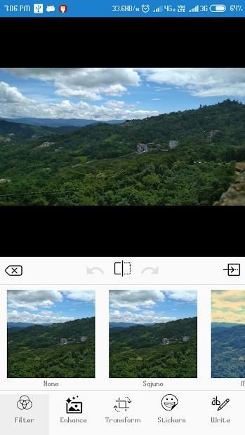 download the best editor ,with all kind of filter ,and with all kind of new feature to edit your photo and make it look beautiful like a professional....there are lots of feature like enhance mode,sticker ,write etc