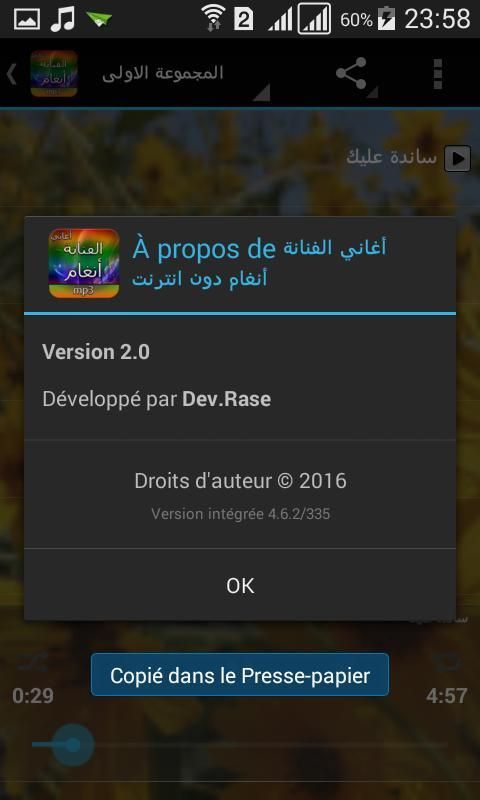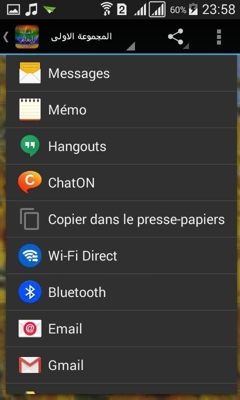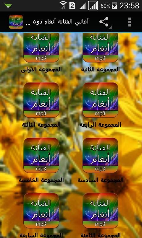 Aplikasi ini memiliki fitur All Songs Angham ditandai juga mengandung Kdlk lagu-lagu keren dari artis Arab dan termasuk lagu Kdlk Mesir, Lebanon, Maroko dan Teluk dan popularitas suara terbaik