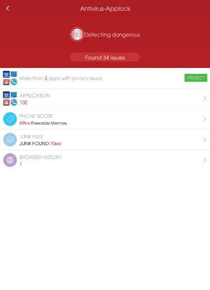 ● Pindai aplikasi / game dan file dan menghapus virus, spyware, malware, trojan, upaya phishing dan membantu menjaga data pribadi Anda aman.