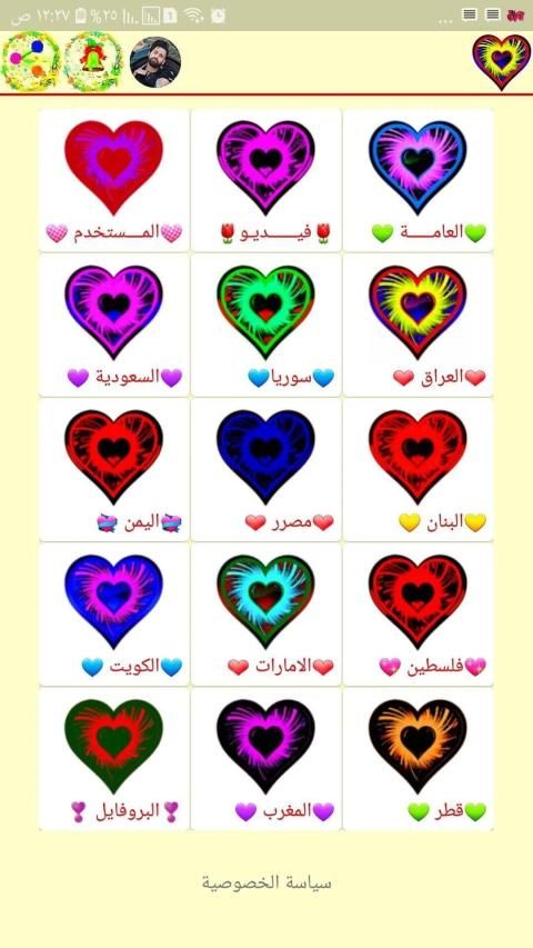 شات العراق دردشة غلاتي العراق دردشة غلاتي سوريا غلاتي الاردن دردشة عطر المحبه دردشة غلاتي السعوديه تطبيق شات العراق دردشة غلاتي العراق دردشة غلاتي السعودية يضم بعض دول الوطن العربي منها العراق سوريا مصر الاردن لبنان الكويت الي اخره، ،،، يمكنك استخدام محادثه عامه وخاصه ويمكنك نشر صور ومقاطع فيديو ع ملفك الشخصي ومشاركه مقاطع فديو مع اصدقائك