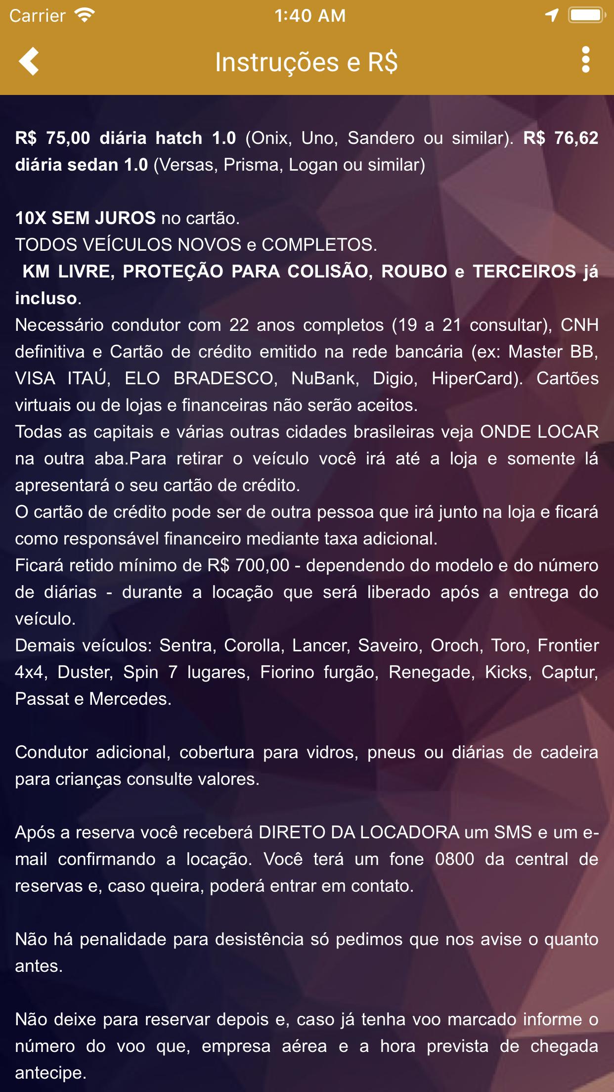 Pelo APP envie seu pedido e logo retornaremos. Só veículos novos e completos, do 1.0 com diárias de R$ 75,34 ou sedan 1.0 com diárias a menos de R$ 94,29.