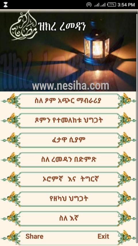 ይህ ዝክረ ረመዳን (ተሻሽሎ ተቀረበ) አፕ የረመዳን ፆም ህግጋትን ለማስተማር የተዘጋጀ ነው።