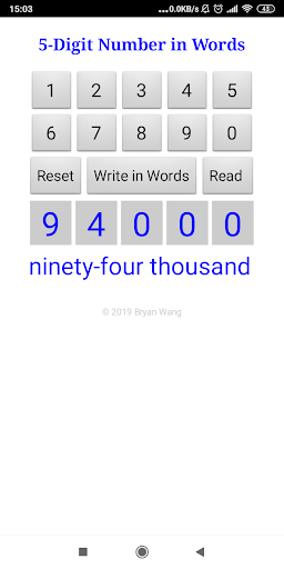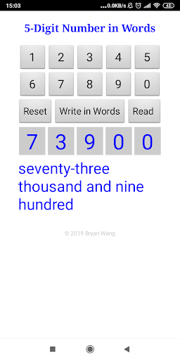 The app shows a 5-digit number in words. It can also read out the 5-digit number.