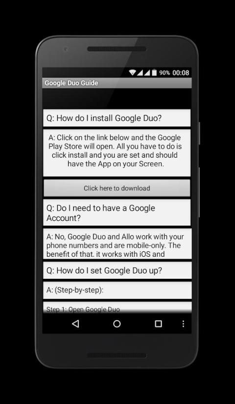 Aplikasi gratis ini memberikan kemungkinan untuk mengetahui segala sesuatu tentang Google Duo. Ini adalah harus memiliki untuk setiap Newbie di komunitas Google Duo. Ini tidak mudah untuk mengetahui segala sesuatu pada awalnya, tetapi App ini akan membantu Anda keluar dan memberikan tips yang luar biasa! Ini adalah panduan tidak aplikasi yang sebenarnya. Kami telah menyediakan link bagi Anda untuk langsung men-download Google Duo dari App kami!