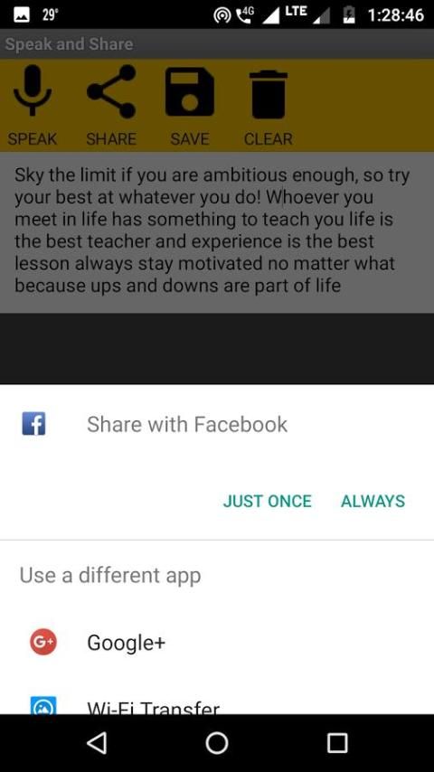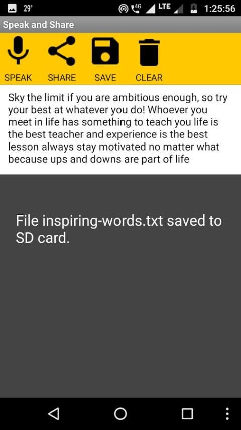 Berbicara dan Share app memungkinkan Anda untuk berbicara kata-kata dalam bahasa Inggris dan mengkonversi pidato ke teks secara otomatis menggunakan Google pidato ke teks mesin. Dengan tombol share satu kali klik, maka Anda dapat dengan mudah berbagi teks menggunakan aplikasi lain pada ponsel Anda seperti Facebook, WhatsApp, Messenger, Google + dan begitu banyak aplikasi lainnya. Dengan tombol simpan, Anda bahkan dapat menyimpan teks ke kartu memori Anda untuk nanti digunakan!
