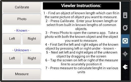 Visual Ruler requires that you select a known length, take a picture using your phone and then position 4 measuring lines on screen over the photo taken to calculate length of unknown object relative to known object. When you take the photo position both objects near each other and try to zoom in on them as much as you can. This means you will get more accurate results.