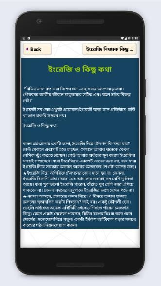 সঠিক ভাবে ইংরেজি শিক্ষা গ্রহনের জন্য নিয়মিত ইংরেজী শেখার বই ও ইংরেজি থেকে বাংলা অনুবাদ, ইংরেজি গ্রামার বা ইংলিশ গ্রামার , ইংরেজি ভোকাবুলারি, ইংলিশ স্পোকেন ভালোভাবে চর্চা করতে হবে এবং সঠিক ইংলিশ উচ্চারন করতে হবে।স্পোকেন ইংলিশ অ্যাপটিতে মূলত আলোচনা করা হয়েছে ইংরেজী থেকে বাংলা অনবাদ এর উপর। ইংরেজি শিখুন একটি সহজ এবং সহজ ইংরেজি ভাষী কোর্স যা আপনি অধ্যাপনা বাংলা ইংরেজি বলার জন্য বোঝানো হয় ব্যবহার ভাষী.আপনার জন্য আরো সহজ তবে যদি আপনি আপনার সাথে সবসময় বাংলা থেকে ইংরেজী অনুবাদ বা ইংরেজী খেকে বাংলা অনুবাদ সাথে রাখেন। বাংলা থেকে ইংরেজী dictionary অ্যাপটি আপনাদের অনেক উপকারে আসবে।