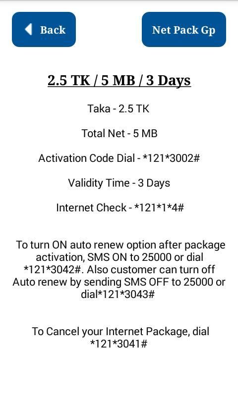 ”Internet pack gp -ইন্টারনেট প্যাক জিপি” আমাদের এ এ্যাপস টিতে জিপি সিমের সকল নতুন আপডেট বিভিন্ন ইন্টারনেট প্যাকেজ এর তথ্য দিয়ে সাজানো হয়ছে। আপনাদের আর কষ্ট করে দোকানদার দের বলতে হবে না শুধু মাত্র আমাদের এ এ্যাপস আপনার মোবাইল এ থাকলে আপনি নিজে নিজেই বিভিন্ন ইন্টারনেট প্যাকেজ নিতে পারবেন অতি সহজেই । যেভাবে ইন্টারনেট নিবেন , প্র্রথমে কোন প্যাকেজ টি নিবেন তা দেখুন, এবং সে প্যাকেজ টির activation code Dial এর উপর চেপে ধরে কোডটি সিলেট করে তা Copy করে ,আপনার মোবাইলের Keypad এ তা Paste করুন । তাহলে নির্দিষ্ট পরিমান ইন্টারনেট প্যাকেজ টি পেয়ে যাবেন । এছাড়া আপনাদের মেসেজে বিভিন্ন সময় যে অফার গুলো দেয় সে গুলো শুধু কিছু সময়ের জন্য ।