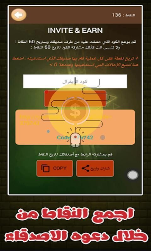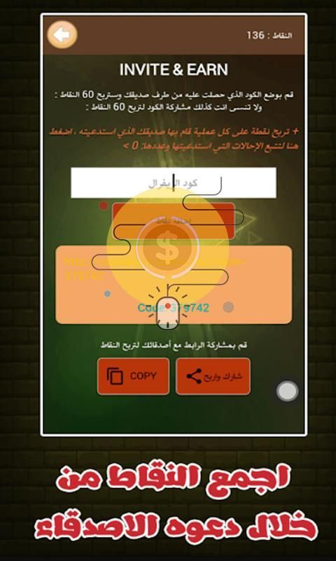 3- قم بدعوة الاصدقاء للحصول على 50 نقطة " يضاف لك ولصديقك 50 نقطة "