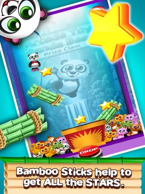 In my Claw Drop version, the object is to drop my Pop (remember I am too young!) safely, please, from the crane into the container. And as Pop falls you will want to direct him so that he can collect all the gold stars along the way. So you will have to line him up carefully so that he will pass thru ALL the gold stars and land inside the container. I have put some bamboo sticks in the game to help Pop bounce in the right direction! You know I love bamboo – all Pandas, big and small, eat bamboo! So be sure to place the bamboo sticks to re-direct him along his journey to the container! If you earn all 3 stars each and every time – then you will become a legend in the world of Pandas! Maybe even as legendary as kung fu panda!