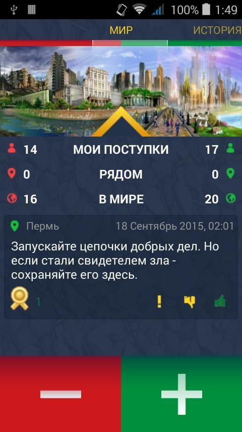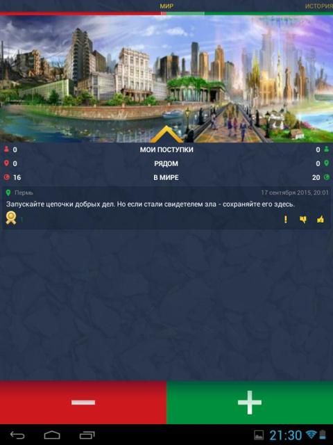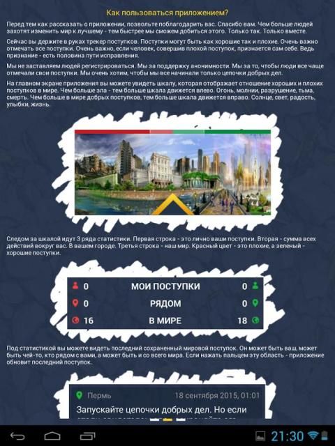 Перед вами трекер поступков. Вокруг стало слишком много зла, и мы решили начать с ним бороться! Хочешь изменить мир? Начни с себя.