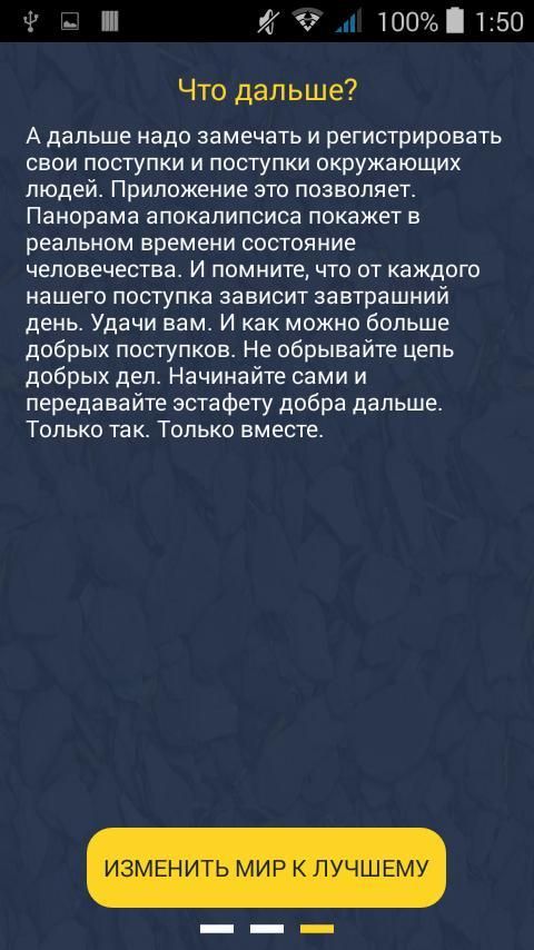 Всякий раз, когда вы сталкиваетесь с добром или злом - отмечайте это. Нагрубили соседу? Наступили на ногу пассажиру в автобусе? Или же наоборот помогли? Помогли бабушке перейти дорогу? Просто замечательно. Отмечайте ваши дела. Отмечайте дела других людей. Начнем бороться со злом вместе. Только так Добро победит.