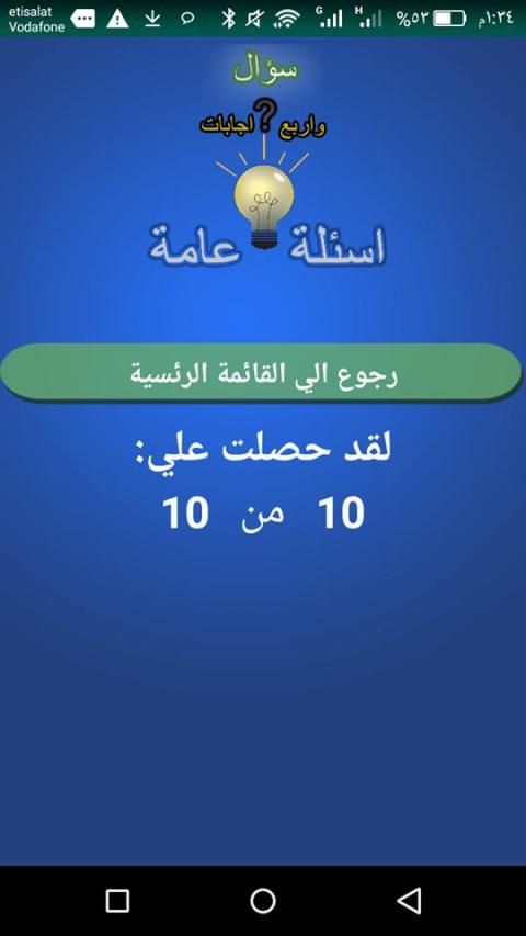 يحتوي برنامج اسئلة عامة علي الكثير من المعلومات العامة في شكل مسابقات ومستويات