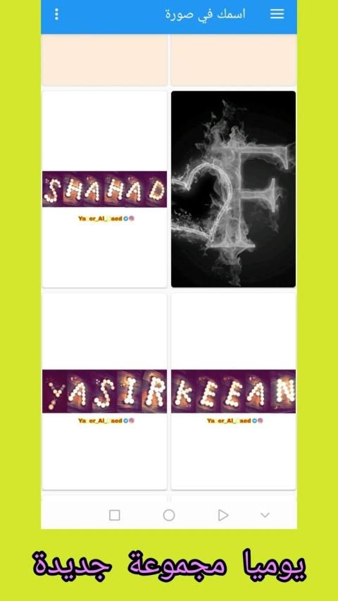 Your name in the picture of all the characters and all the names in the beautiful pictures you can save or share it also allows you to put images as wallpapers for the screen and other than that you can share as cases and Watasab or Story on Facebook and Instagram and share a story in YouTube and other than Yaser_AL_Saed.
