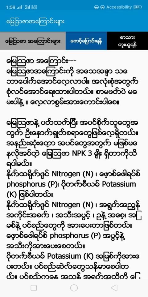 ျ မန္ မာႏ ိုင္ ငံ အ တြင္း 0 ွိ ၾ က ကုန္ ေသာ စိုက္ ပ် ိဳး ေရး လုပ္ ငန္း လုပ္ ကိုင္ ေန ၾ က သူမ် ား ႏ ွ င့ ္ စိုက္ ပ် ိဳး ေရး ဝါသနာ 0 ွင ္မ ် ား အ ဆင္ ေ ျ ပႏ ိုင္ ေစ ရန္ စိုက္ ပ် ိဳး နည္း ႏ ွ င့ ္ ျ ပဳ ျ ပင္ နည္း မ် ားကို စု စည္း. ကူး ယူေ ဖာ ္ ျ ပ ထား 0 ွိ ပါ သည္, Posting လဲ ႐ ွင ္ အား လံုး ကို လဲ Kredit ေပး ပါ တယ္ ခင္ ဗ် ာ။