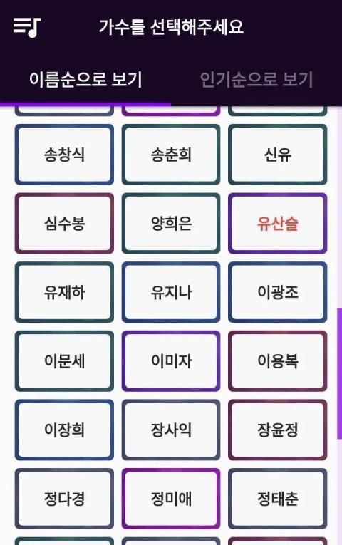 홍진영, 장윤정, 김용임, 나훈아, 남진, 태진아, 송대관, 설운도, 주현미, 이미자, 심수봉, 조항조, 김수희, 현철, 김연자, 박현빈, 신유, 김혜연, 박상철, 박주희, 배호, 계은숙, 김지애, 신웅, 유지나, 문주란, 명국환, 금잔디, 미기, 배호, 조영남, 조항조, 패티김, 현숙, 홍자, 송가인, 정다경, 김나희, 정미애, 한가빈, 두리, 이지원, 지원이, 안소미, 김소유, 미스트롯 / 미쓰트롯전곡