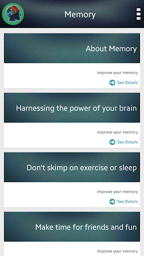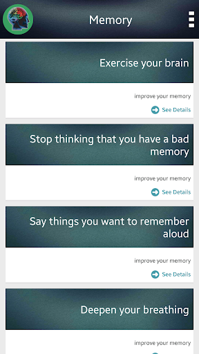 Aplikasi ini memberikan informasi tentang cara-cara yang luar biasa untuk meningkatkan memori Anda.