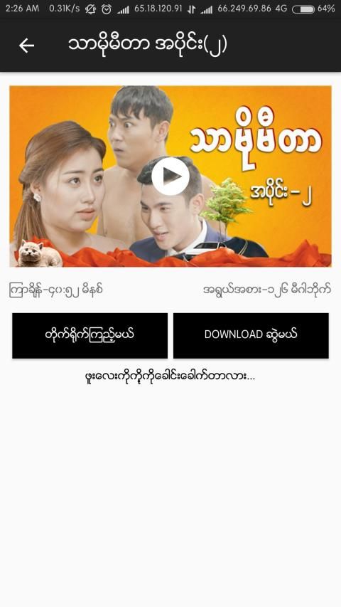 တလြဲေတခ်ာ္မ်ားနွင့္ဟာသဇာတ္လမ္းၾအဖစ္ၾကည့္ရႈရမယ့္ သာမိုမီတာ ျမန္မာရုပ္သံဇာတ္လမ္းတြဲကို အပတ္စဉ္ တနလၤာေန့ ေကန ေသာၾကာေန့အထိ ည(၈:၄၅) နာရီအခ်ိန္ တြင္ တစ္ပိုင္းစီတင္ေပးသြားမွာပဲျဇစ္ပါတယ္။