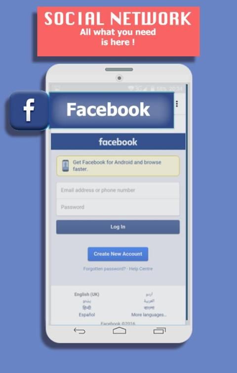 Aplikasi Sosial ini menyediakan semua link sosial Anda ke suatu tempat sehingga Anda dapat bersosialisasi aplikasi Anda dengan mudah.