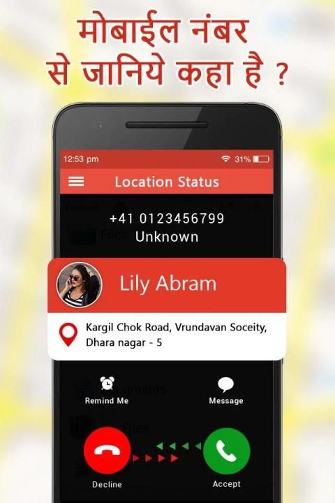 - Pelacak nomor ponsel: Aplikasi kami membantu Anda melacak nomor telepon apa pun dari India. Anda dapat mencari nomor ponsel untuk menemukan nama kontak dan lokasi. Daerah kota, negara bagian, negara dan operator layanan dari nomor telepon akan ditampilkan dan lokasi geografis akan ditampilkan pada peta.
