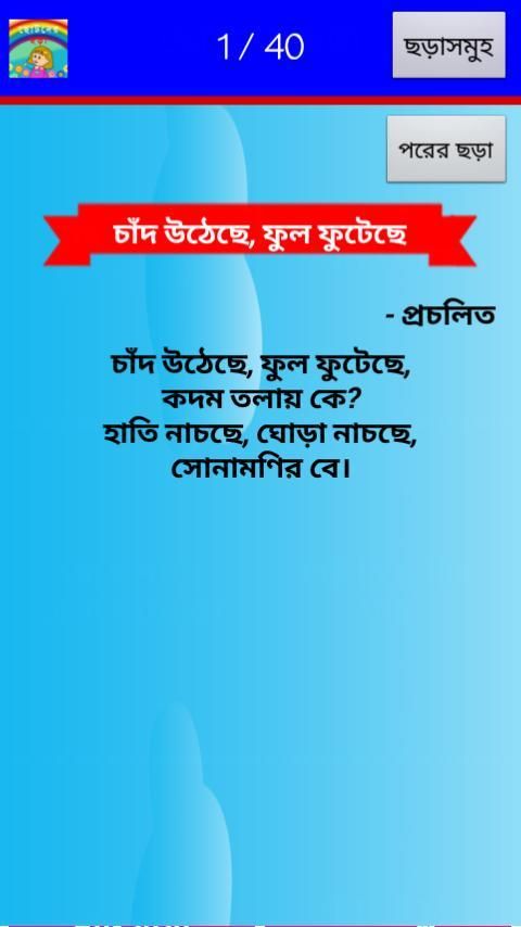 Some India application are update now! 20,000+ users downloaded ছোটদের ছড়া latest version on 9Apps for free every week! This app is intended for an adult audience. This hot app was released on 2016-12-28. You can enjoy the most completed function of this app.