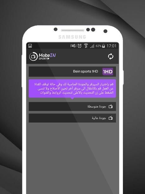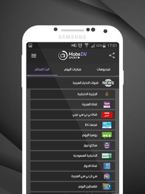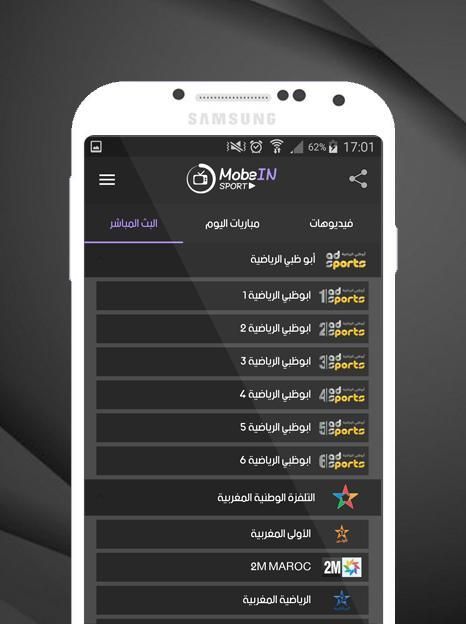 Aplikasi MobeIN Anda dapat menonton semua saluran Arab dan tanpa pemotongan apapun, dan juga untuk menonton saluran terenkripsi dan menikmati permainan terkuat, dan jurnal internasional yang lebih kuat, dengan men-download aplikasi dan menonton saluran Sport gratis dan tanpa berlangganan, Vttabiguena ini memungkinkan Anda untuk menonton saluran di ponsel Anda, di mana saja Anda berada, tanpa kebutuhan untuk throughput yang tinggi dari internet, cukup untuk membawa aplikasi kita dan menikmati menonton karangan bunga yang paling indah dan mendorong klub favorit Anda,