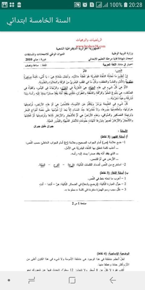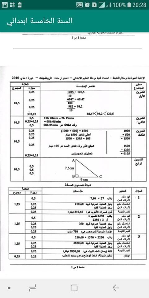 السنة الخامسة ابتدائي , مواضيع محلولة رياضيات و اللغة العربية واللغة الفرنسية . بالاضافة الى ذلك اختبارات الفصول محلولة في مادة الرياضيات