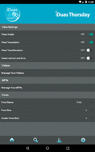 - Can customize the app using the settings (i.e. View Arabic, Transliteration, font size, and more)