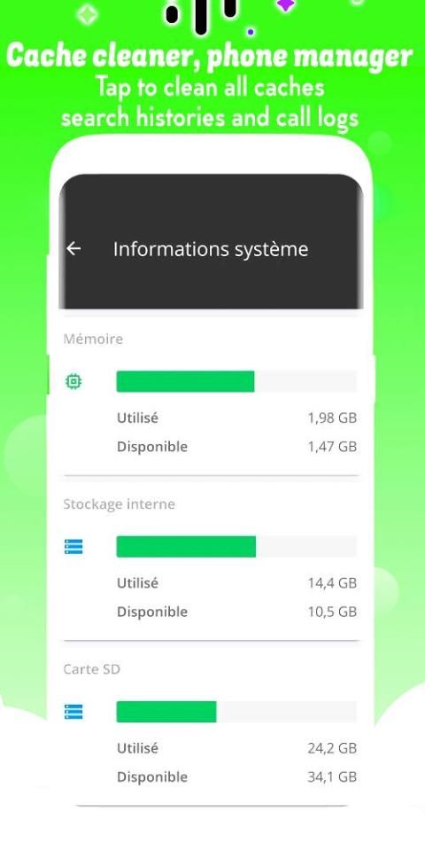 Kami memperkenalkan Anda yang baru lahir dari pembersih cache - manajer telepon - master Pembersih Telepon Booster, Penguat, Pengoptimal adalah penguat kecepatan cepat, pembersih sampah & pembersih sampah & pembersih telepon & pembersih android & pembersih cache & pembersih aplikasi & pembersih memori & telepon penguat & penguat memori & penguat Android & pendingin CPU & penghemat baterai untuk ponsel Android Anda. Ini dapat mempercepat memori ponsel dan membersihkan file sampah dengan aman untuk menambah ruang yang tersedia dalam satu ketukan.