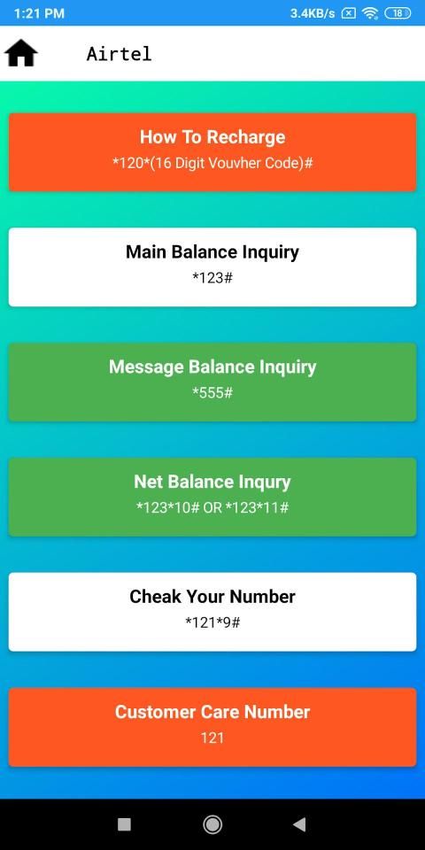 Sim Enquiry Numbers application helps the Indian prepaid telecom users to find the numbers for specific operations like Recharge, Main, Message, Net Balance enquiry, Finding own number and Customer care number. As of now app supports telecom operators like Airtel, Aircel, Idea, Vodafone, Uninor, Tat Docome, BSNL and Reliance.