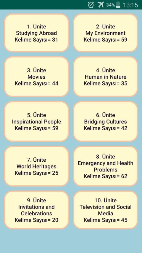 6) Ana ekranda hangi ünitede kaç kelime kayıtlı olduğu görülebilmektedir.
